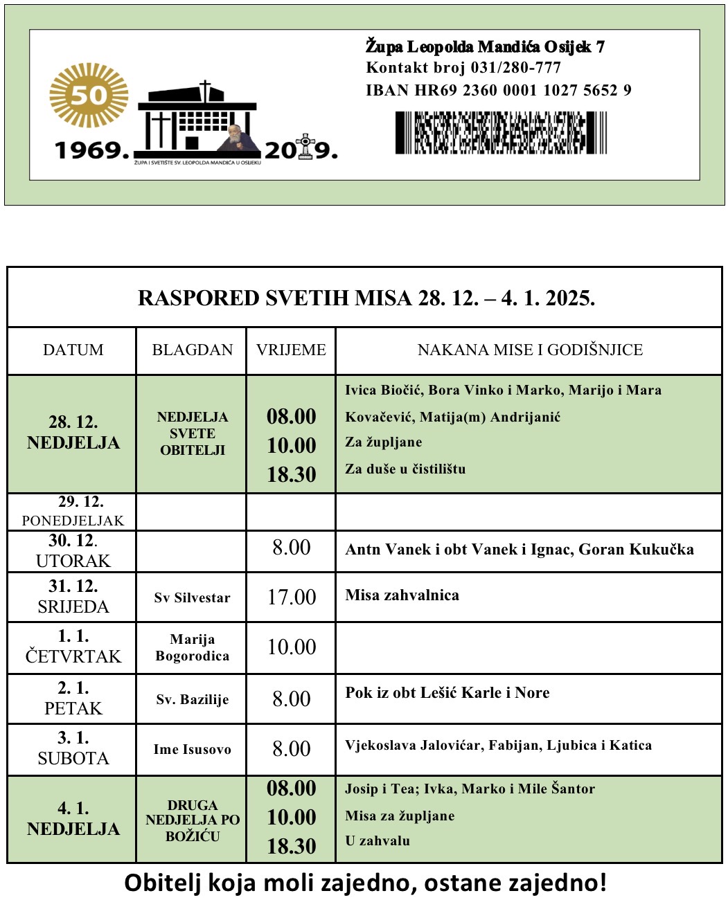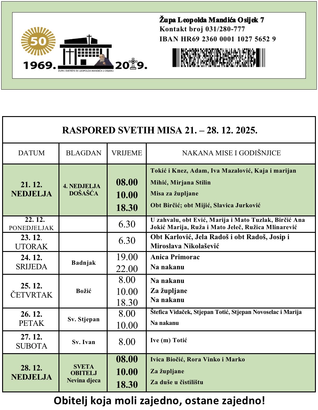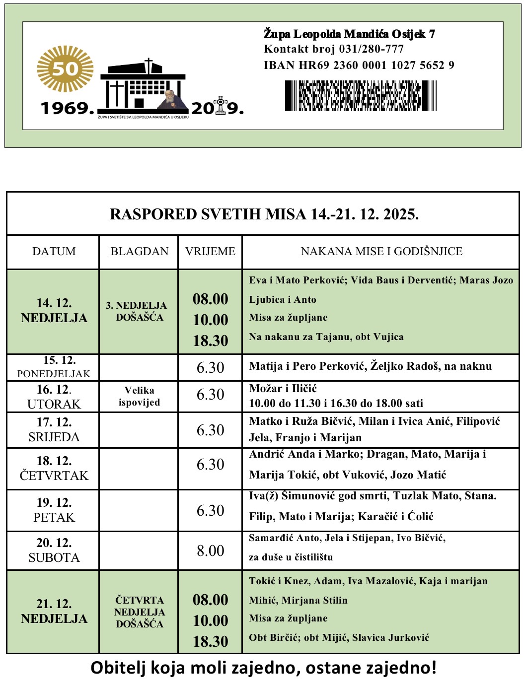 Možete ga uplatiti u župnom uredu ili „internet bankarstvom“ na župni račun. Radi bolje evidencije molimo da uz ime navedite adresu i broj župne knjižice: